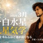 - 【九星気学】九紫火星の2026年3月(3/5~3/4)の月の運勢① 九星気学の年盤・月盤の方位配置とその意味 「揺れやすい流… 続きを読む: 【九星気学】九紫火星の2026年3月(3/5~3/4)の月の運勢
