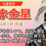 - 【九星気学】七赤金星の2026年1月(1/5~2/3)の月の運勢① 九星気学の年盤・月盤の方位配置とその意味 今月のテーマは… 続きを読む: 【九星気学】七赤金星の2026年1月(1/5~2/3)の月の運勢