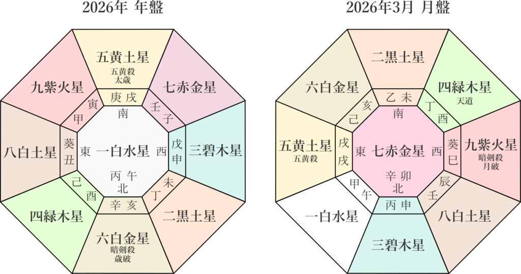 2026年は、九紫火星が年盤で南東に回座している一年です。