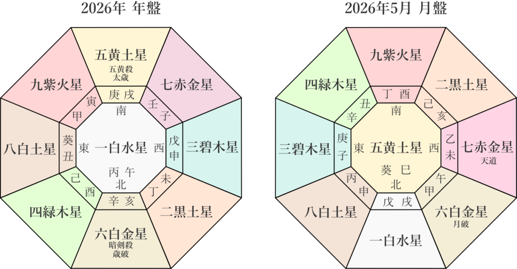 2026年全体の年盤が「北西」という高い志を示す場所にあるため、今月の金銭管理の質が、下半期に手にする大きな財運の器を決めることになります。