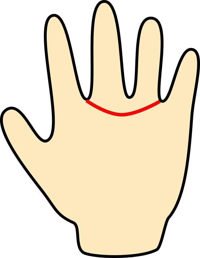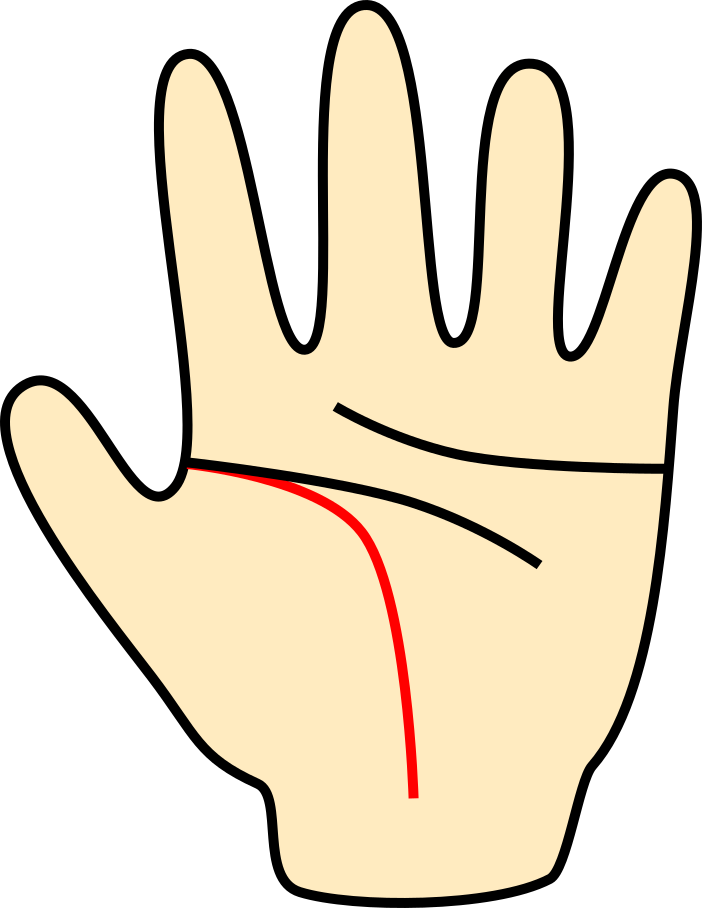 生命線とは、親指と人差し指の間から手首に向かって弧を描くように伸びる線のこと。