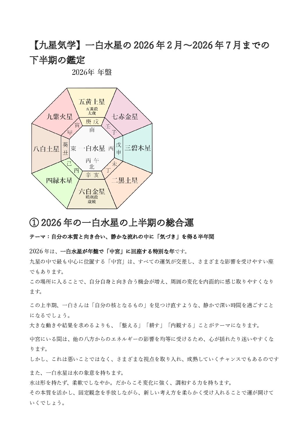 “【九星気学】一白水星の2026年2月~2026年7月までの上半期の鑑定” の口コミを投稿します