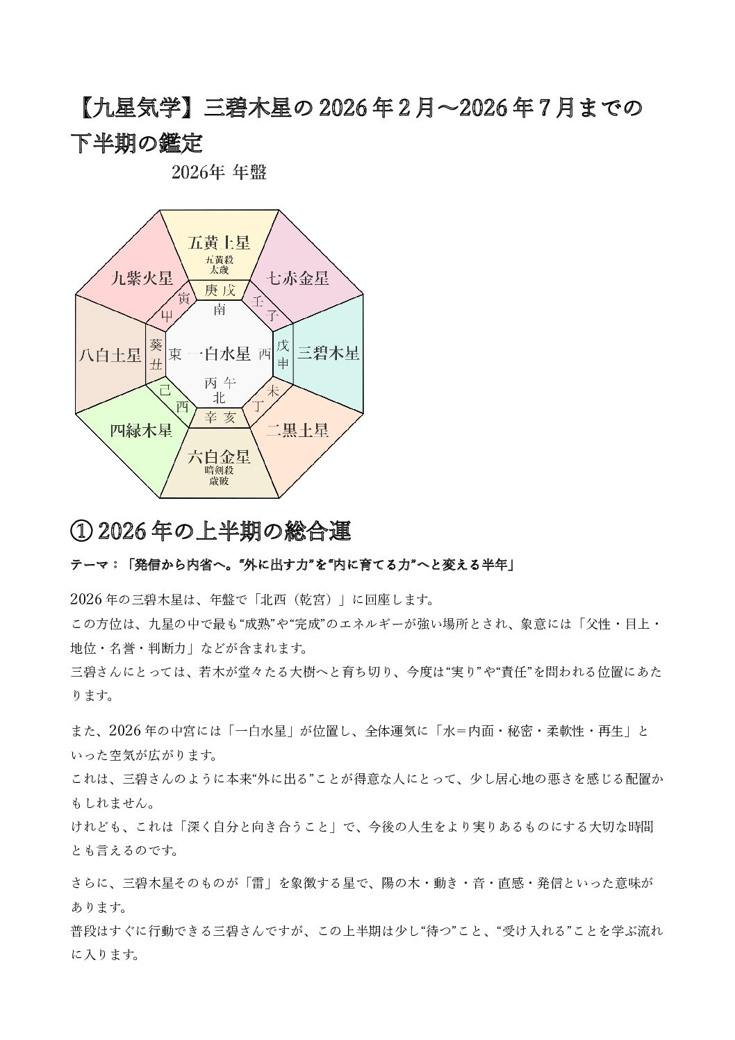 “【九星気学】三碧木星2026年2月~2026年7月までの上半期の鑑定” の口コミを投稿します