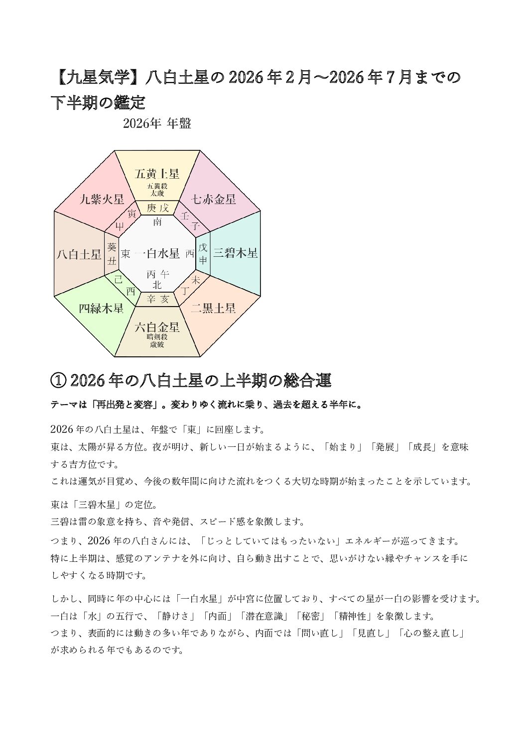 “【九星気学】八白土星の2026年2月~2026年7月までの上半期の鑑定” の口コミを投稿します